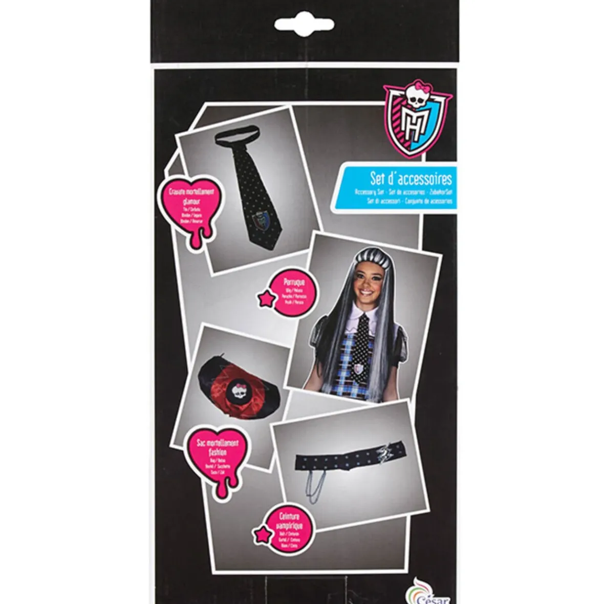 Set accessoires déguisement Frankie Stein Monster High comprenant une perruque, un porte monnaie, une ceinture et une cravate. Dès 8 ans.