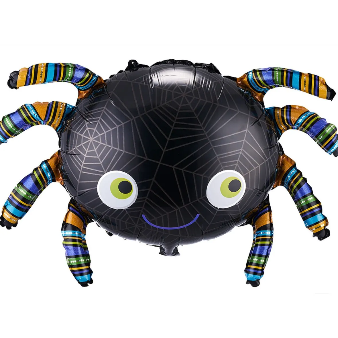 Ballon araignée noire aux pattes multicolores.