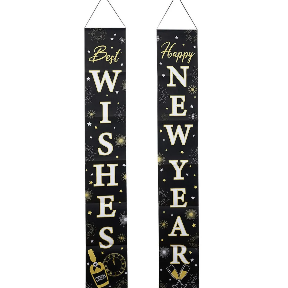 Disposez ces 2 bannières verticales autour de votre entrée pour réserver un accueil digne de ce nom à vos invités le soir du réveillon du nouvel an !