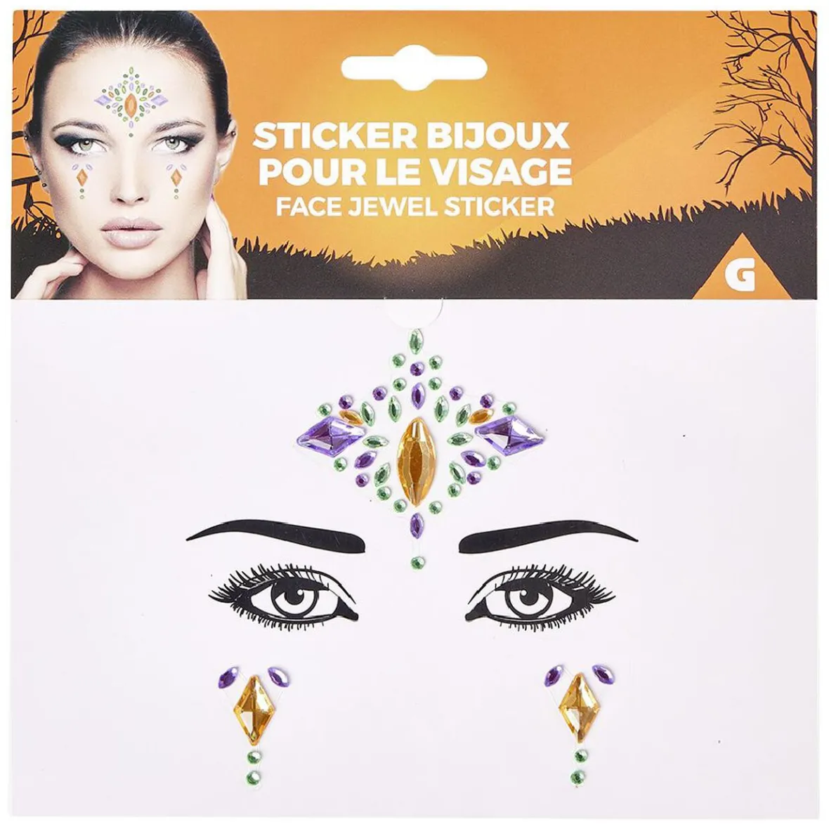 Bijoux autocollants pour visage, parfaits pour compléter un maquillage à l’occasion d’Halloween.