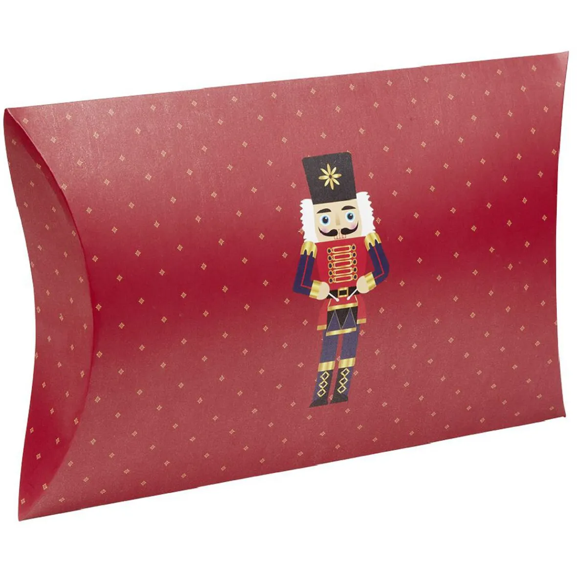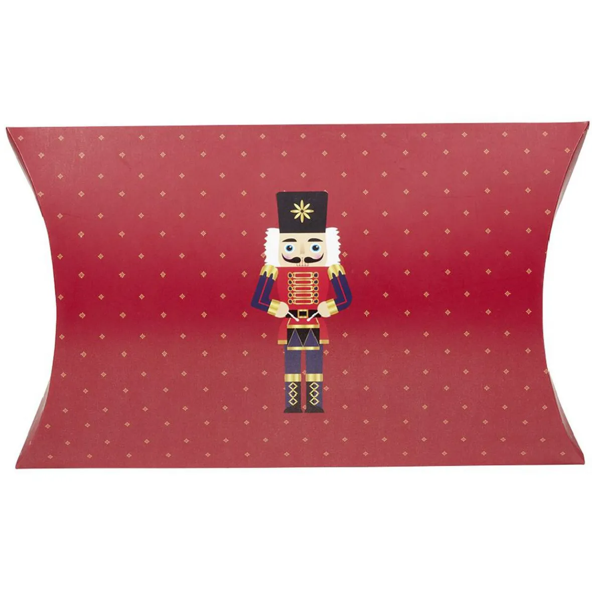 Boîte à cadeau berlingot rouge de style traditionnelle taille L avec motif soldat de Casse-Noisette.