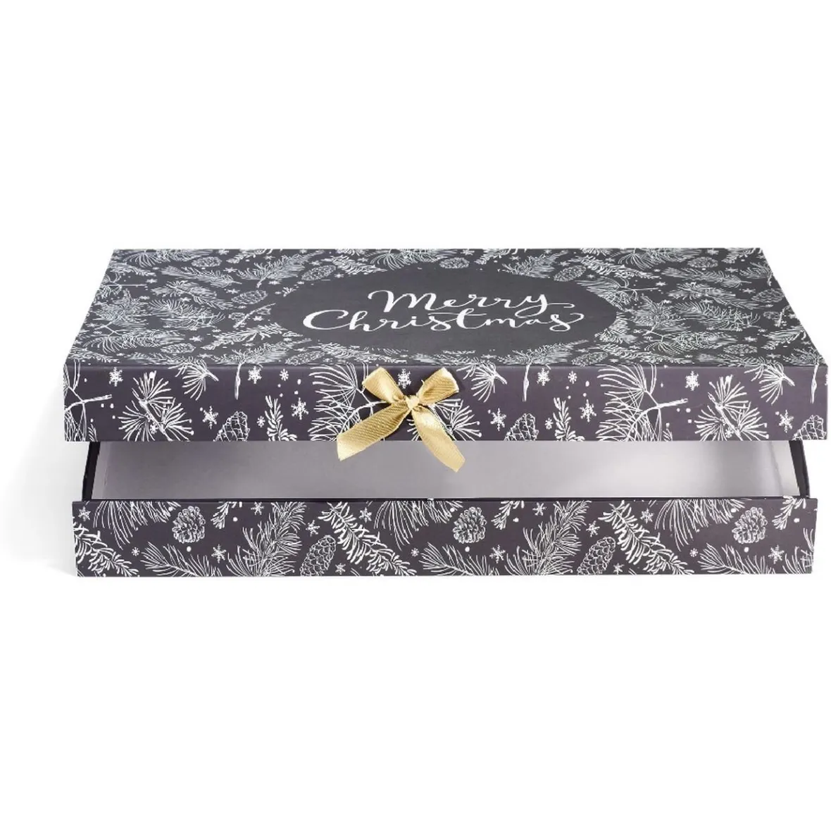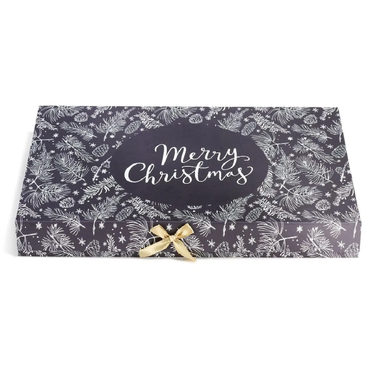 Cette jolie boîte en carton de style vintage avec motifs feuillages de Noël et inscription Merry christmas fera un emballage cadeau des plus raffinés pour le soir du 24 Décembre.