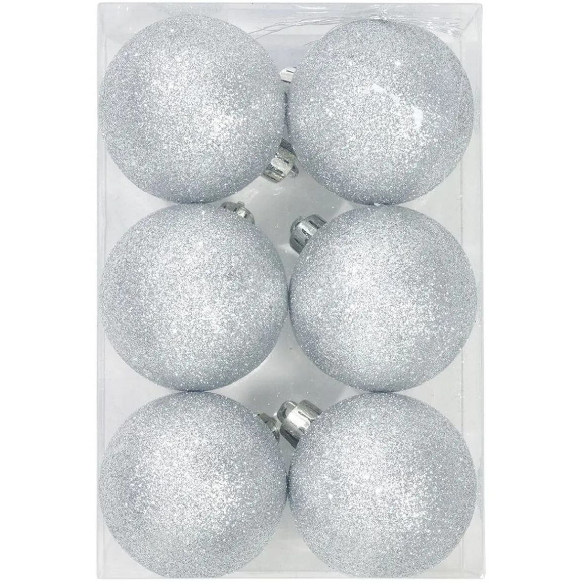 Lot de 6 boules de Noël à paillettes argentées à accrocher sur le sapin et partout ailleurs durant les fêtes.