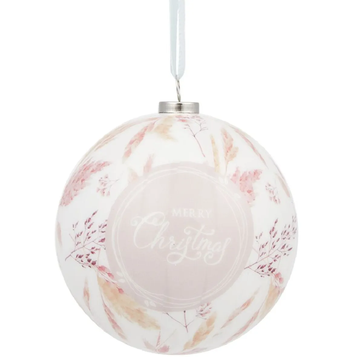 Boule de Noël de style nature avec diffétents motifs de fleurs à suspendre au sapin.