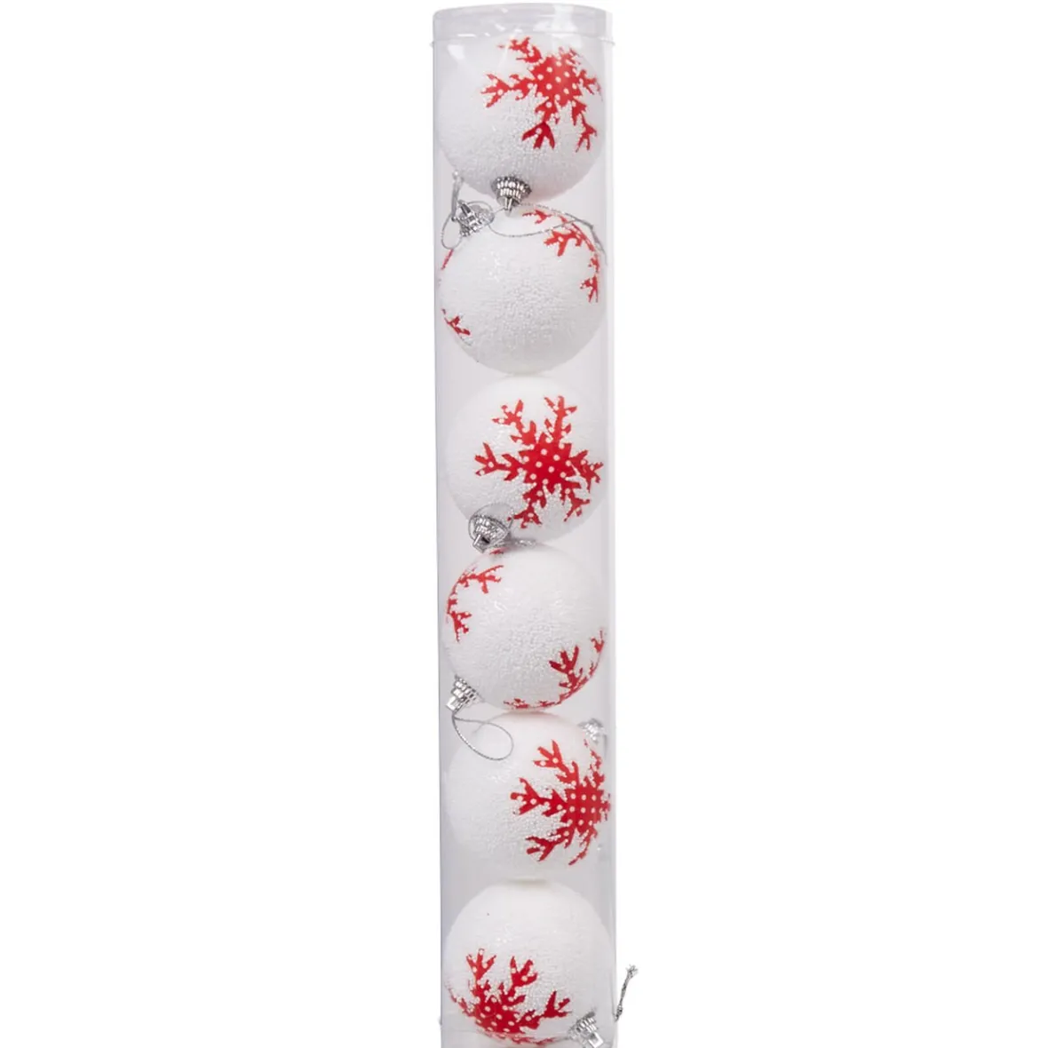 Boule de noël en mousse design flocon blanc rouge x6-Gifi Online