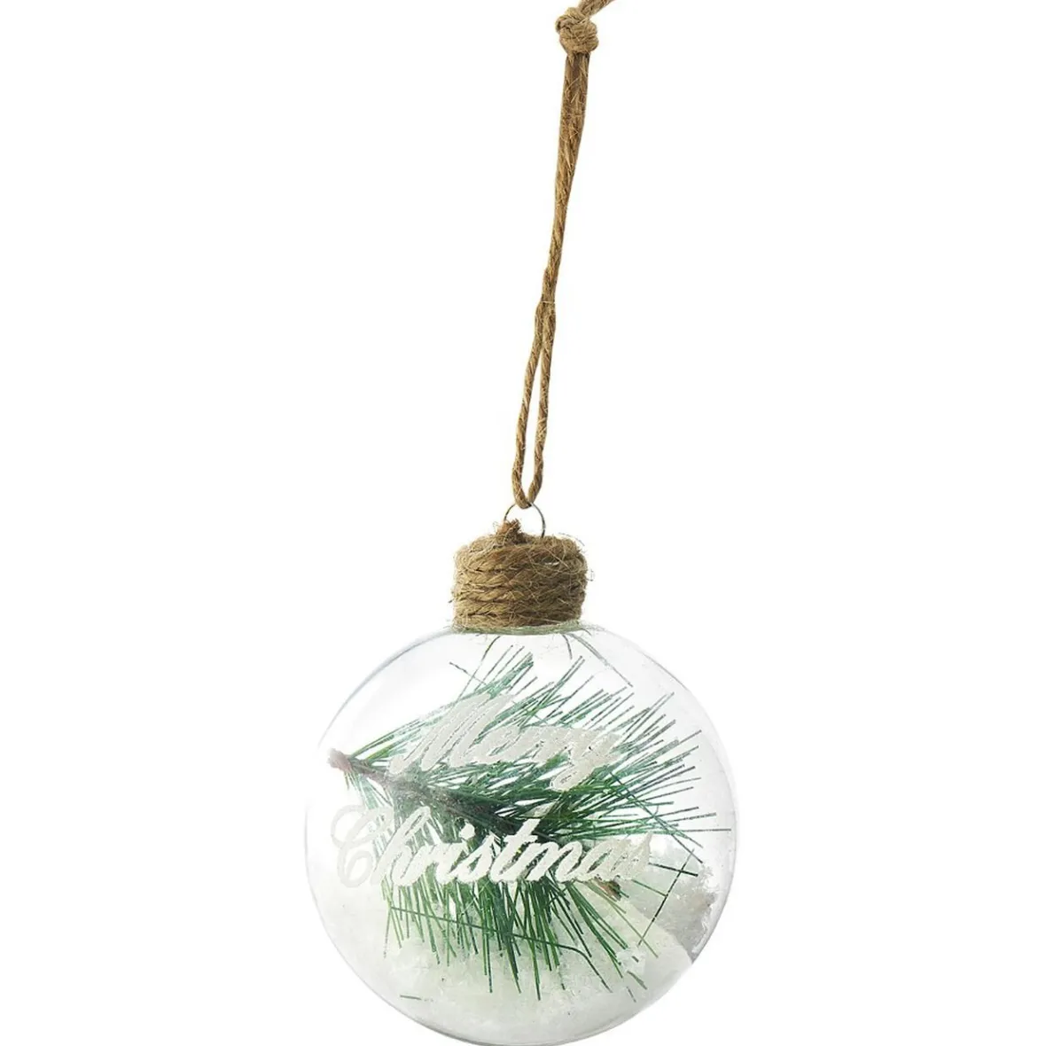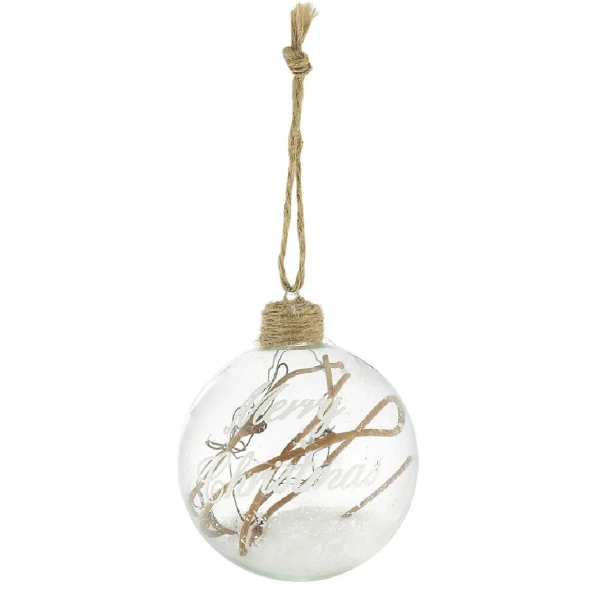 Boule de Noël en verre avec message Merry Christmas et décoration intérieure à l’esprti nature et vintage.