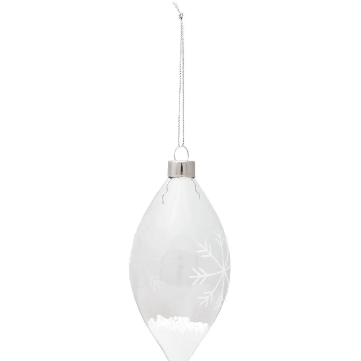 Boule de Noël en verre transparent forme goutte motif flocon blanc-Gifi Discount