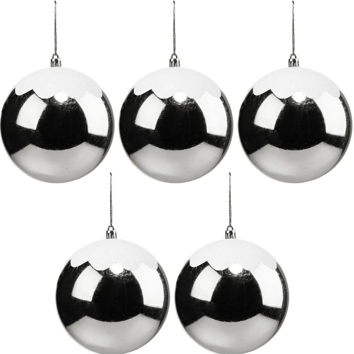 Lot de 5 boules de Noël argentées à suspendre au sapin pour un rendu des plus chics et festifs.