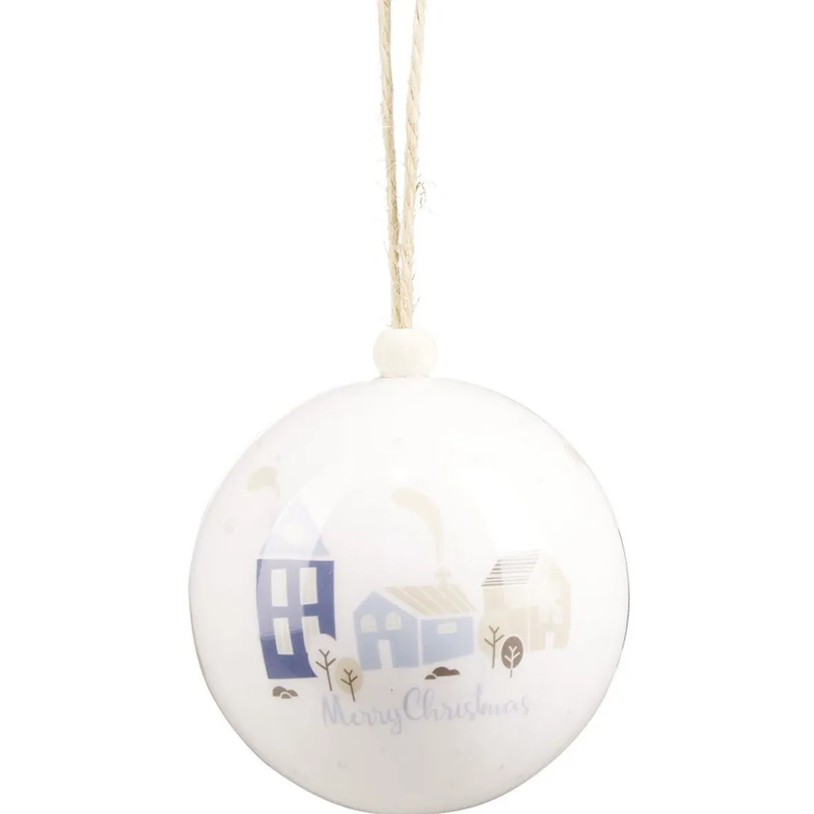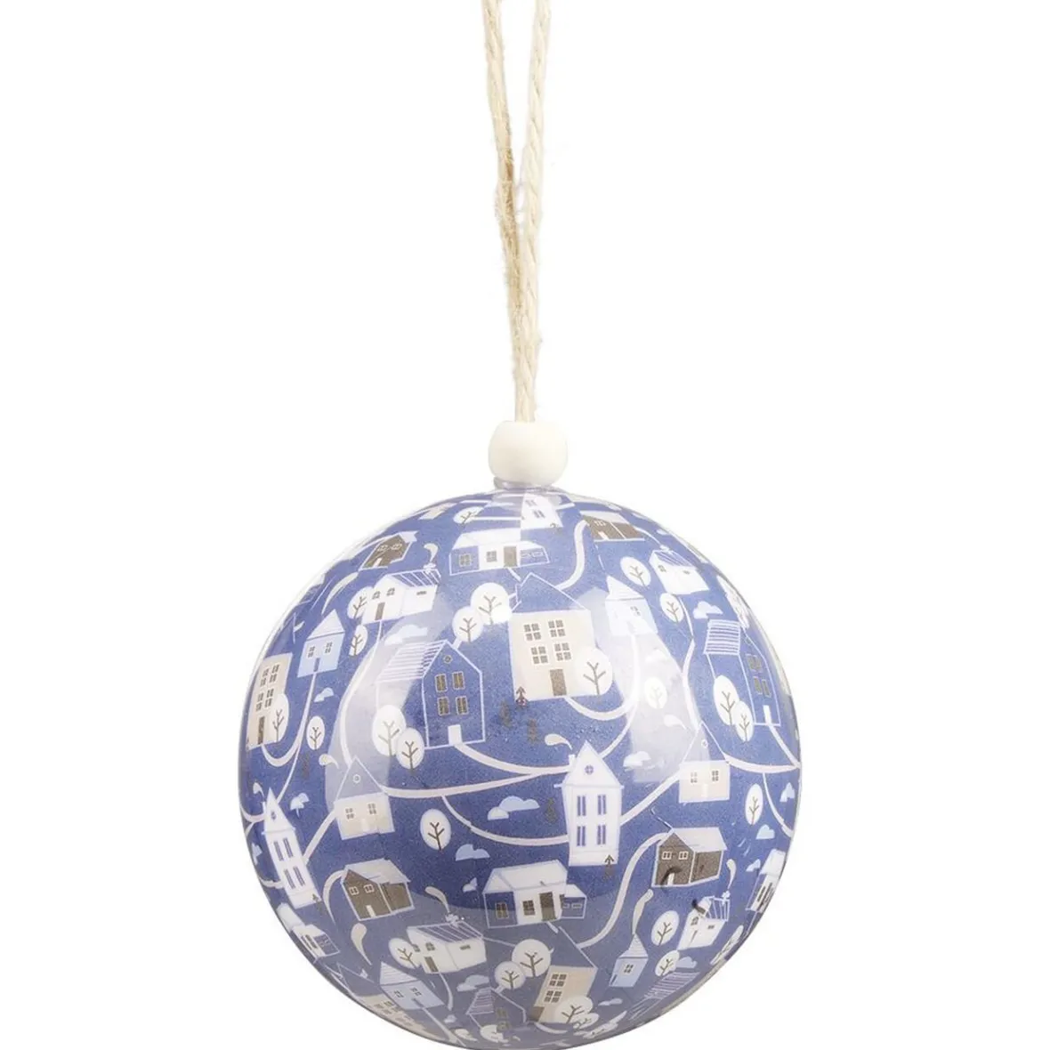 Boule de Noël à motif bleu et blanc pour décorer votre sapin dans le style traditionnel et givré.