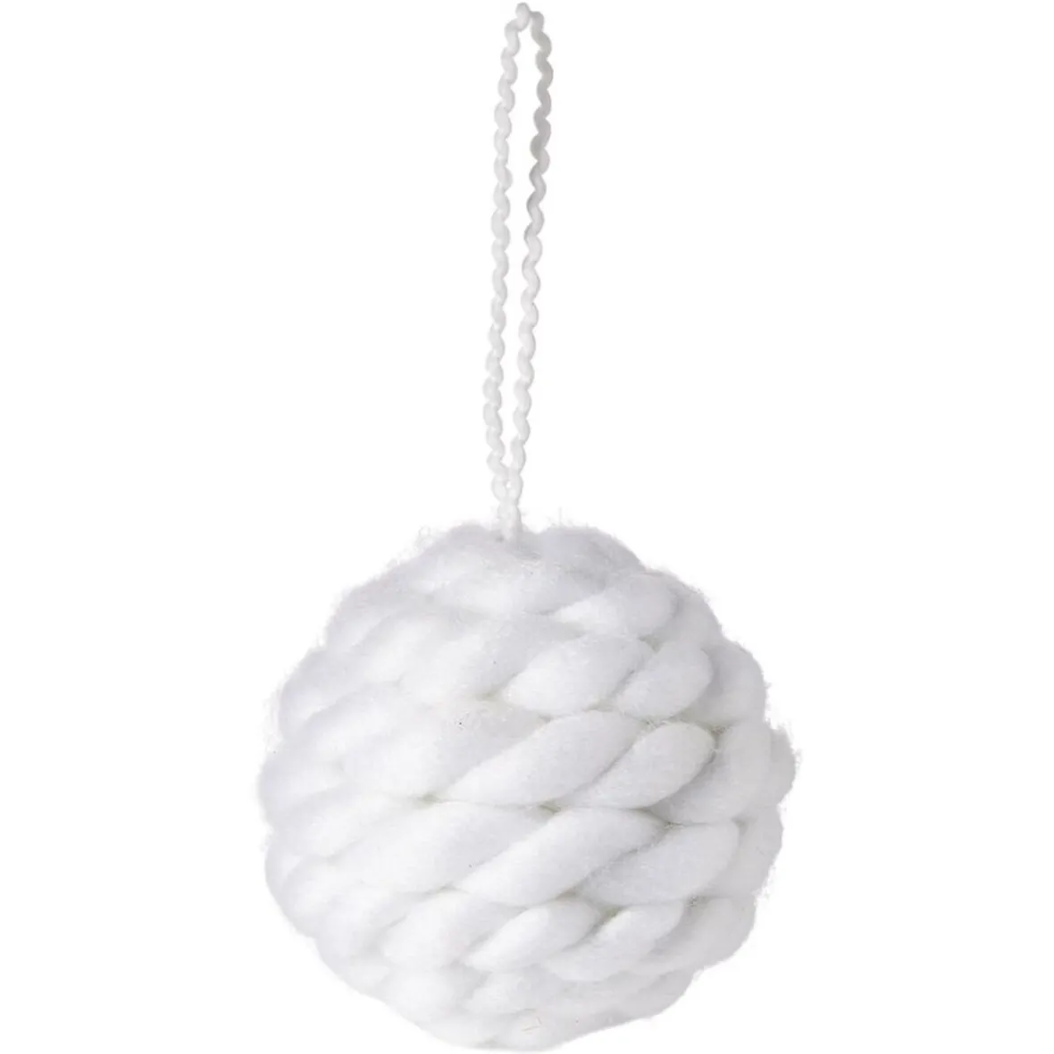 Ambiance cocooning assurée dans votre décoration de sapin grâce à cette boule blanche effet laine tricotée.