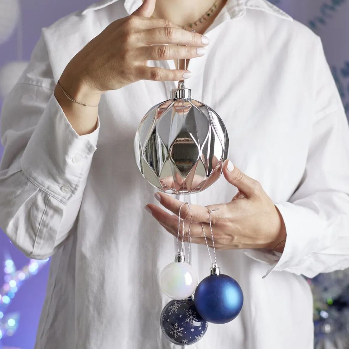 Boule de Noël origami argenté ou bleue Ø12cm – 2 coloris-Gifi Discount