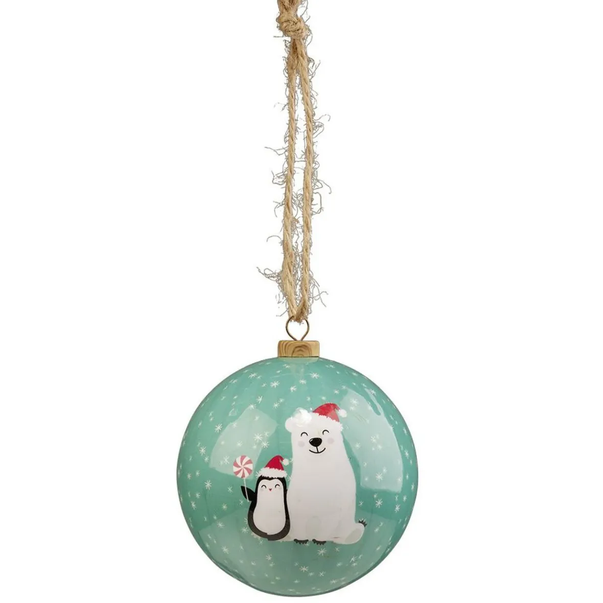 Boule de Noël recouverte de papier imprimé dans le style tradi rouge et blanc.