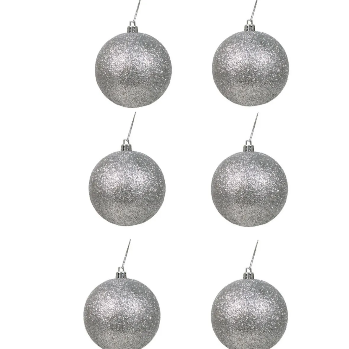 6 boules de Noël, Ø8 cm, plastique, couleur argenté.