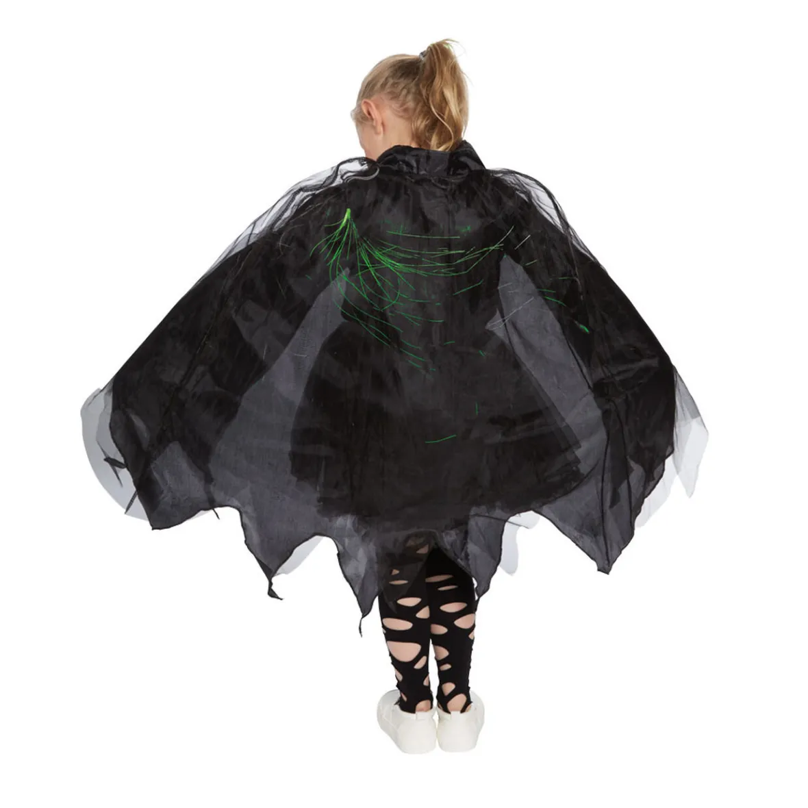 Idéal pour Halloween! Déguisement cape noire lumineuse pour enfant composée de fibre optique de couleur vert.