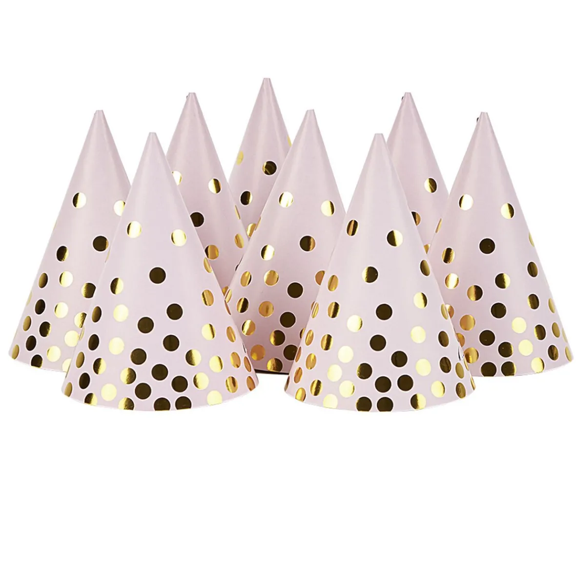 Ornez vos têtes de ces chapeaux de fête rose à poids dorés et en avant la musique !