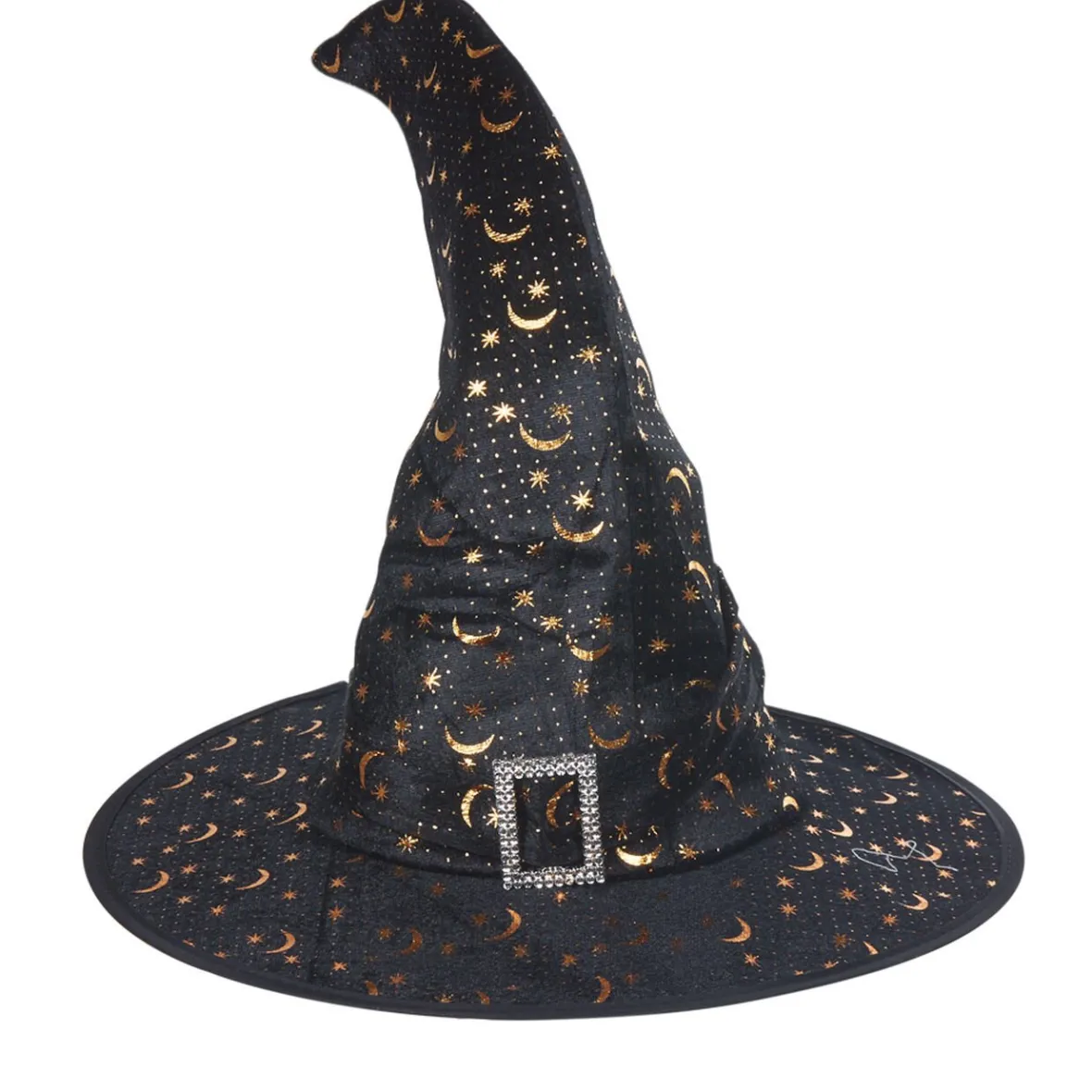 Pour être la plus classe des sorcières et briller pour la nuit d’Halloween, optez pour ce super chapeau noir aux lunes dorées et brillantes.