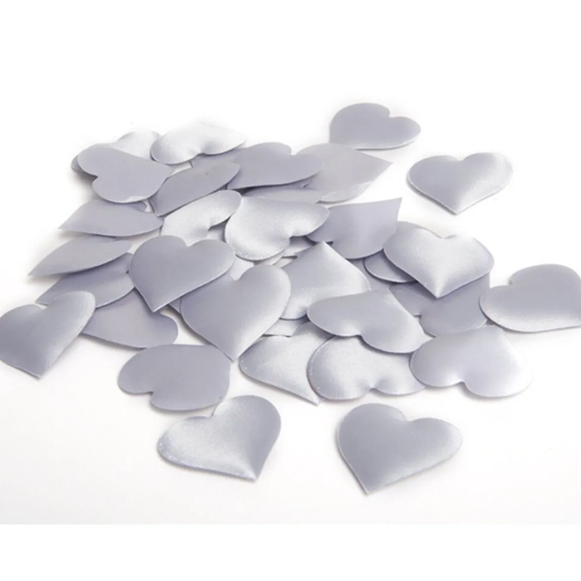 40 coeurs argentés en mousse, L. 3 cm, pour décoration de mariage ou autre évènement.