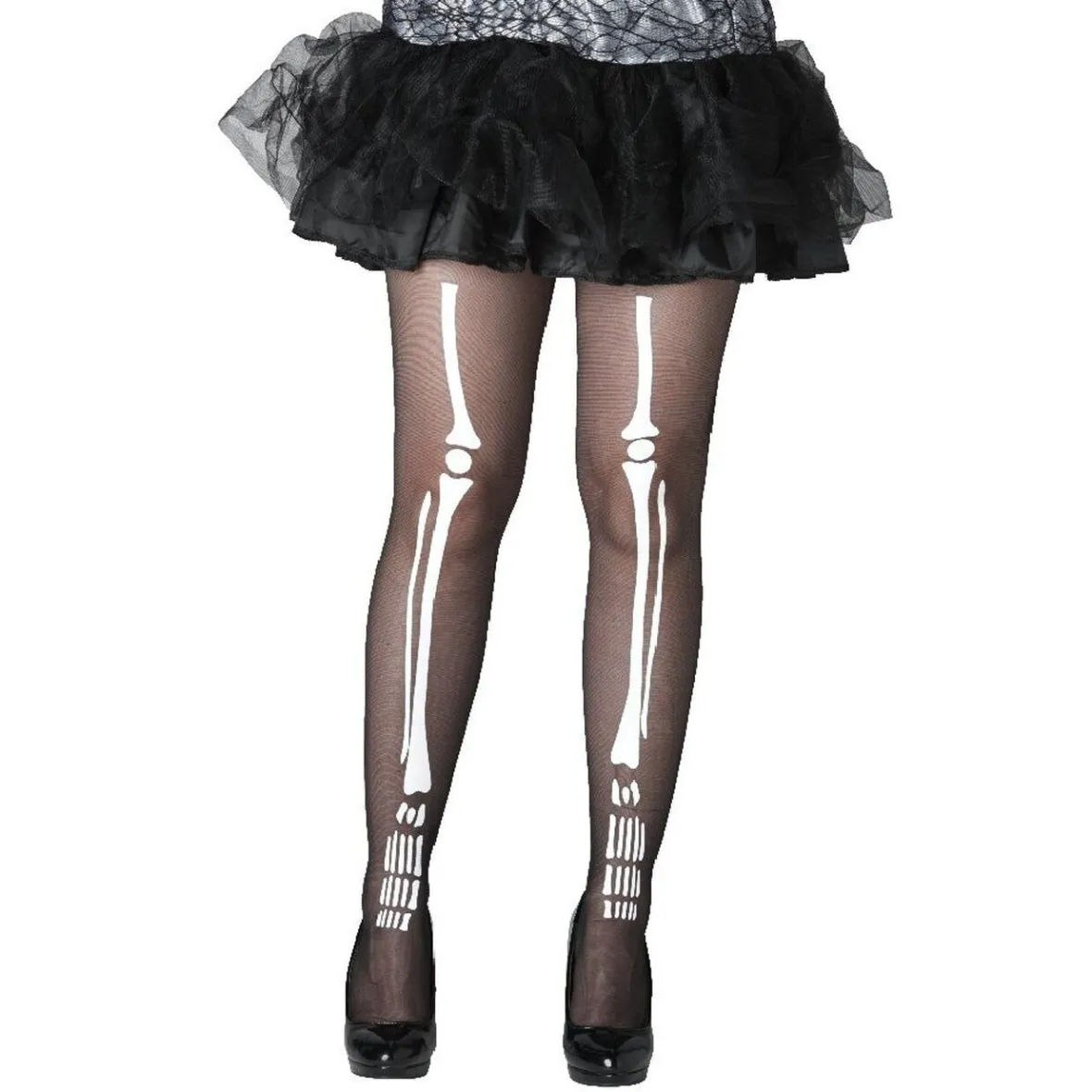 Collant noir design squelette, idéal pour compléter un déguisement à l’occasion de Halloween.