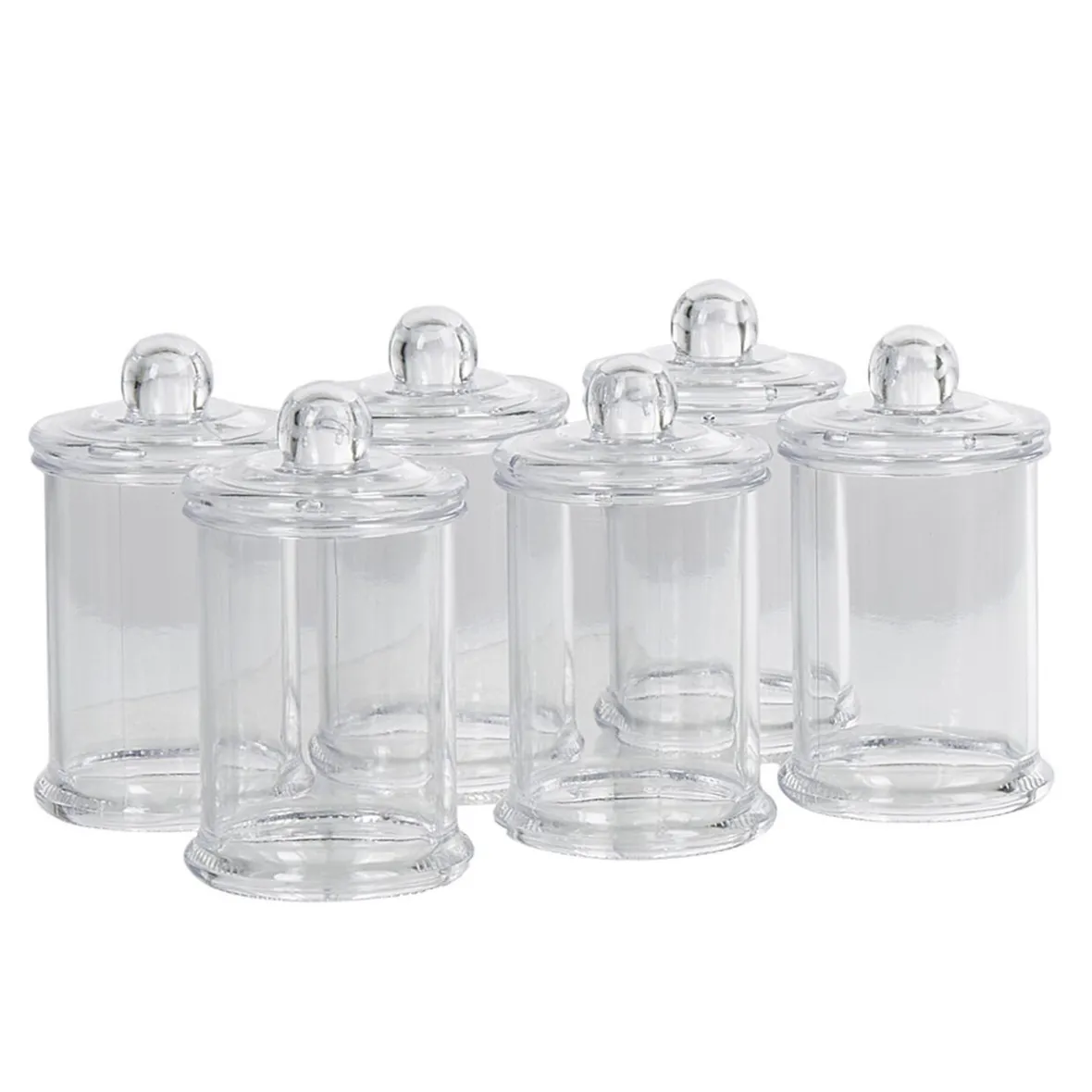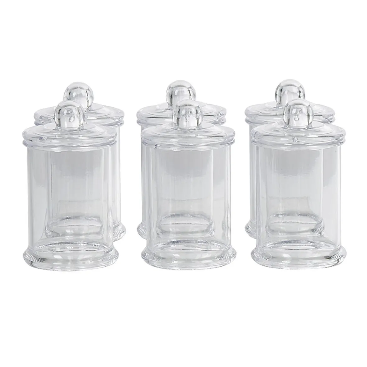 Optez pour cet ensemble de 6 minis bonbonnières en plastique transparent comme contenants à dragées pour un mariage, un baptême ou une communion.