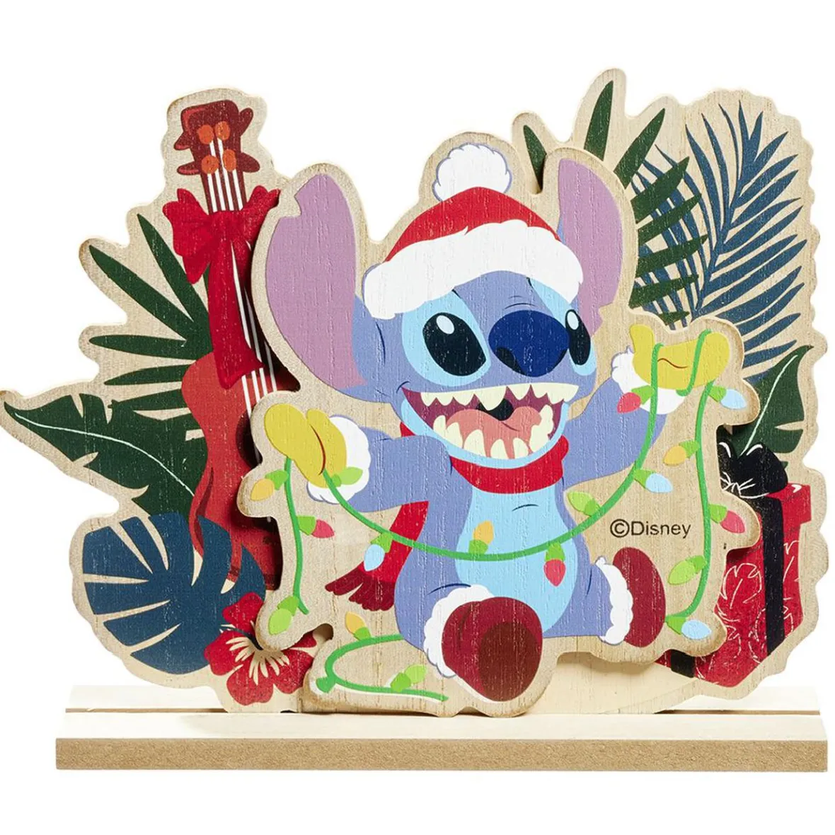 Décoration à poser en bois représentant Stitch dans le thème de Noël, idéale pour agrémenter votre décoration à l’occasion des fêtes de fin d’année.