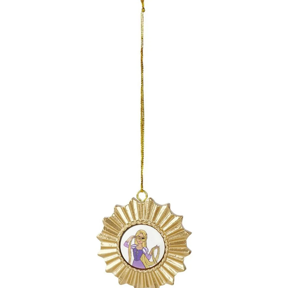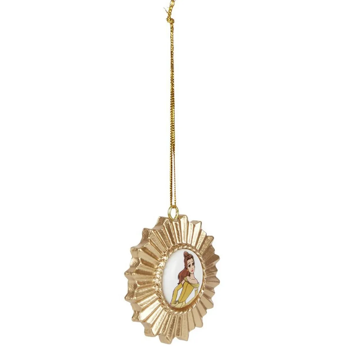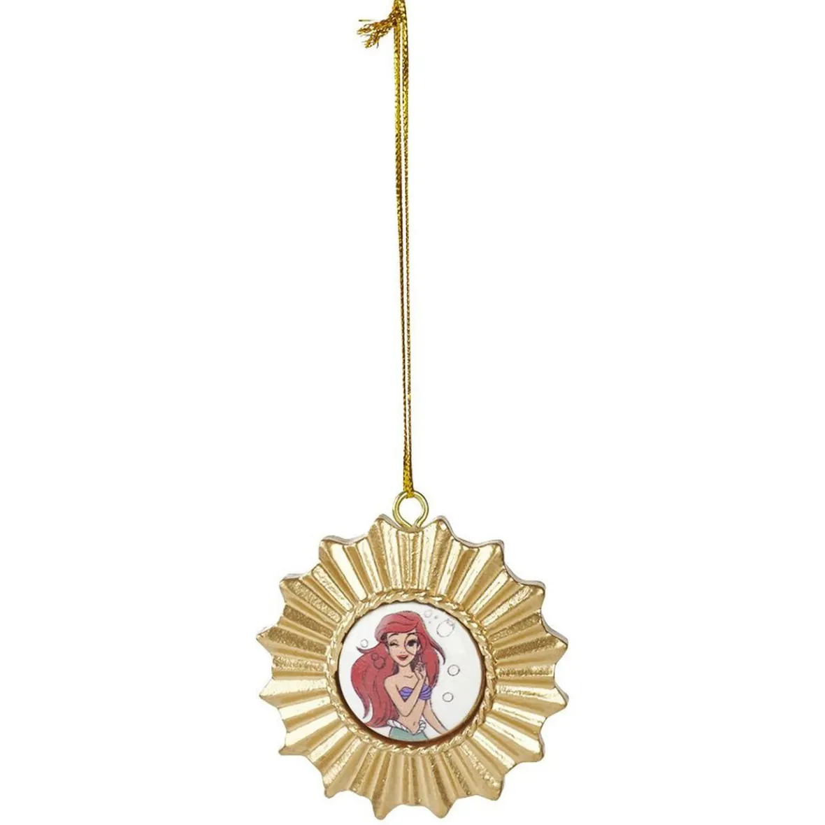 Décoration de Noël dorée en forme de soleil avec à l’intérieur une princesse Disney Cendrillon, Ariel, Raiponce, Jasmine ou Belle.