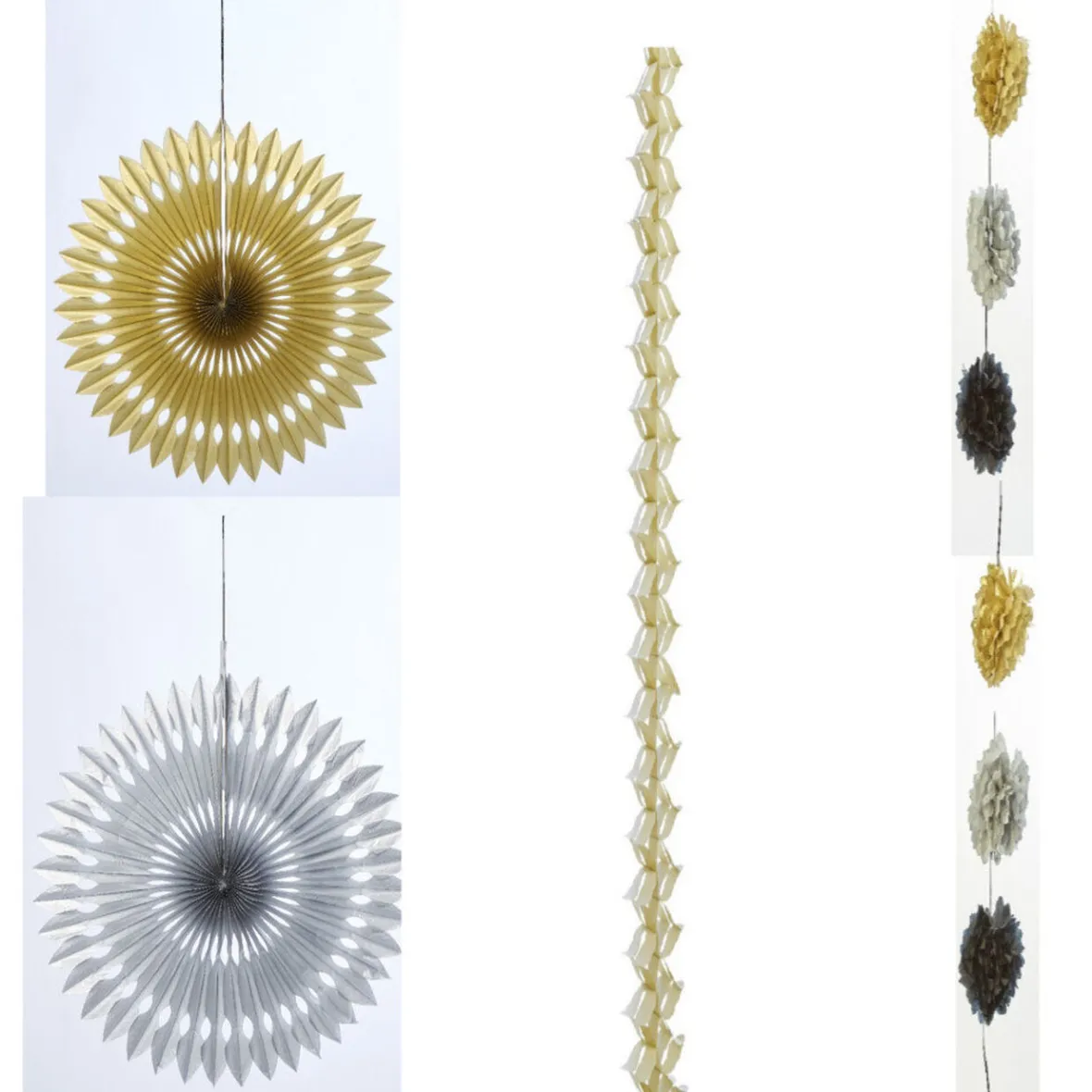 Kit décoratif pour salle de fêtes comprenant 2 guirlandes et 2 suspensions.