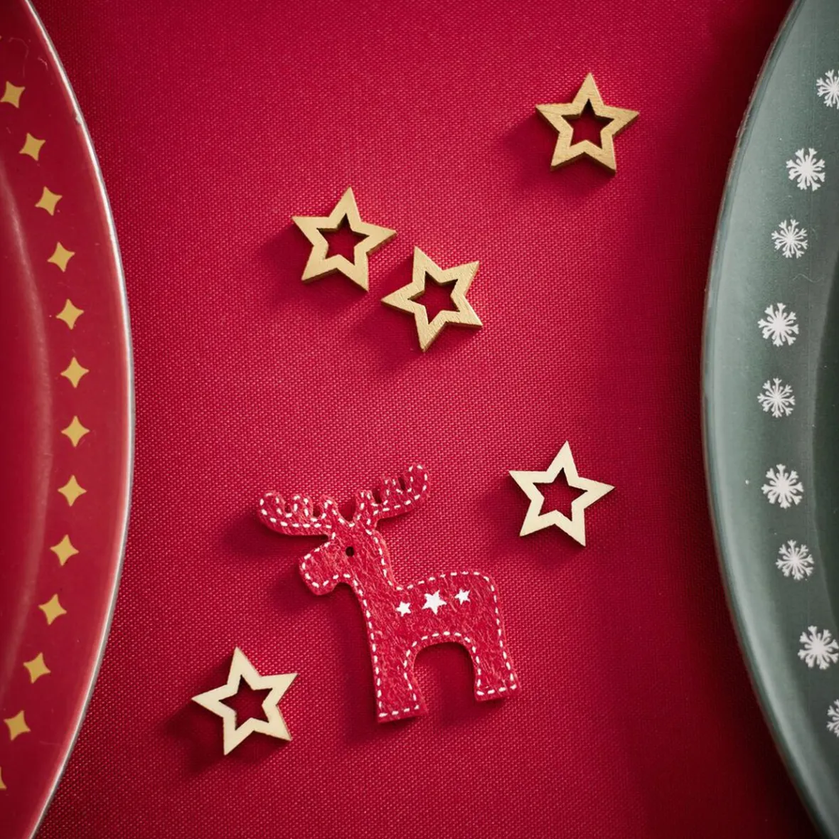 Apportez une touche festive et chaleureuse à vos repas avec ce lot de 6 décorations de table en forme de renne en feutrine rouge.