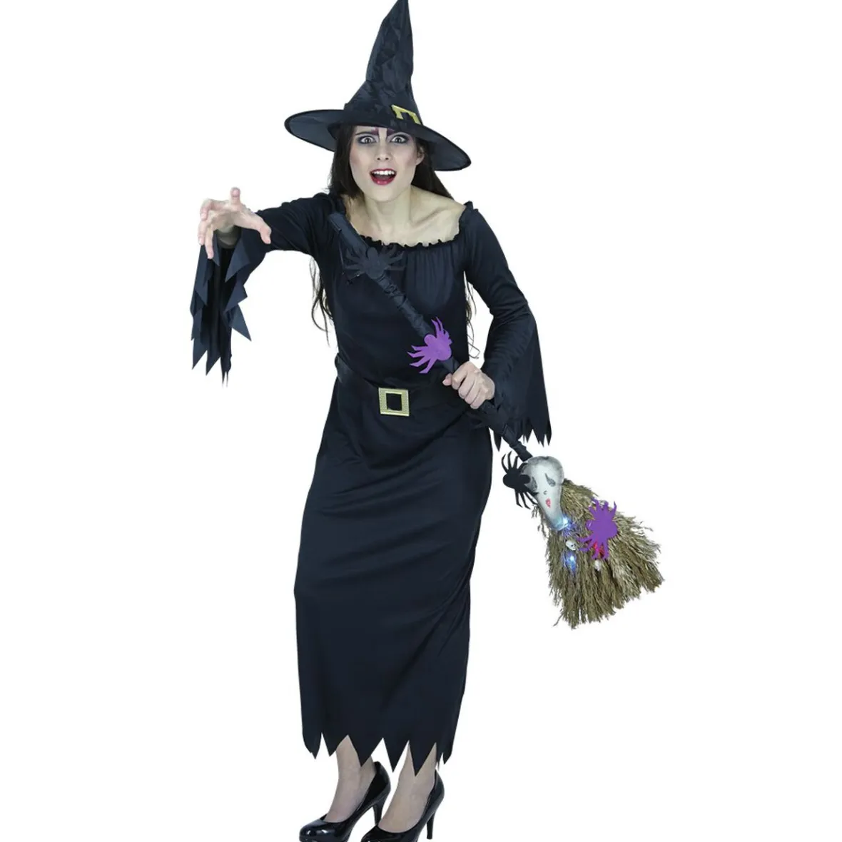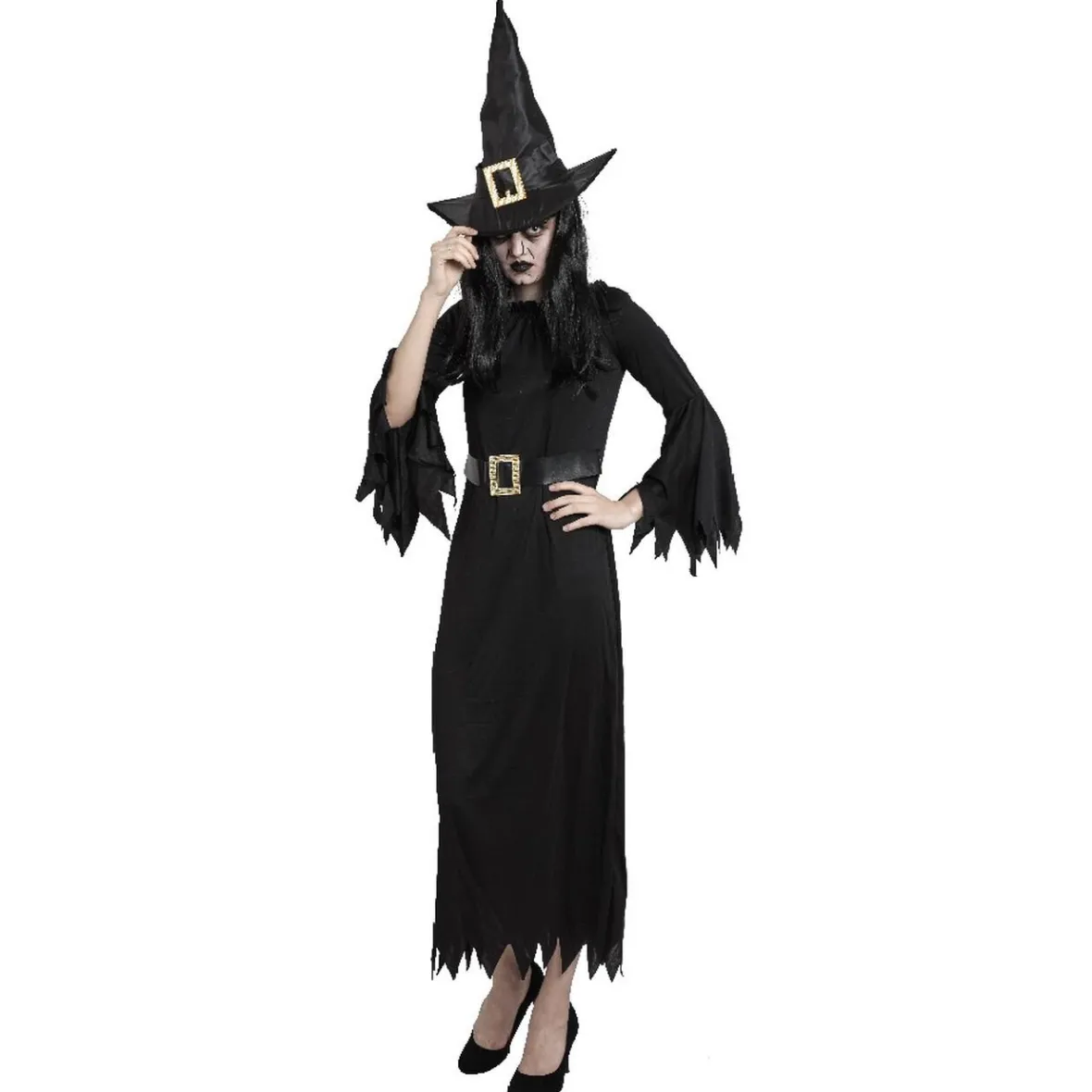 Déguisez-vous en authentique pour la soirée Halloween et effrayez vos invités avec cette tenue complète. Enfilez votre chapeau et il ne vous manquera plus que le balai pour vous envoler.