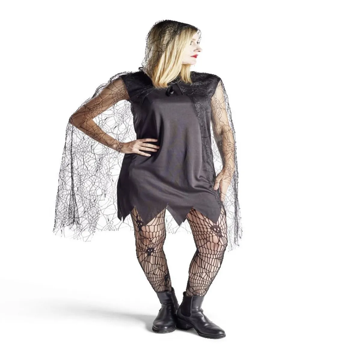 Deviens l’araignée la plus belle et terrifiante à l’occasion d’Halloween avec ce déguisement noir pour adulte composé d’une robe et une cape.