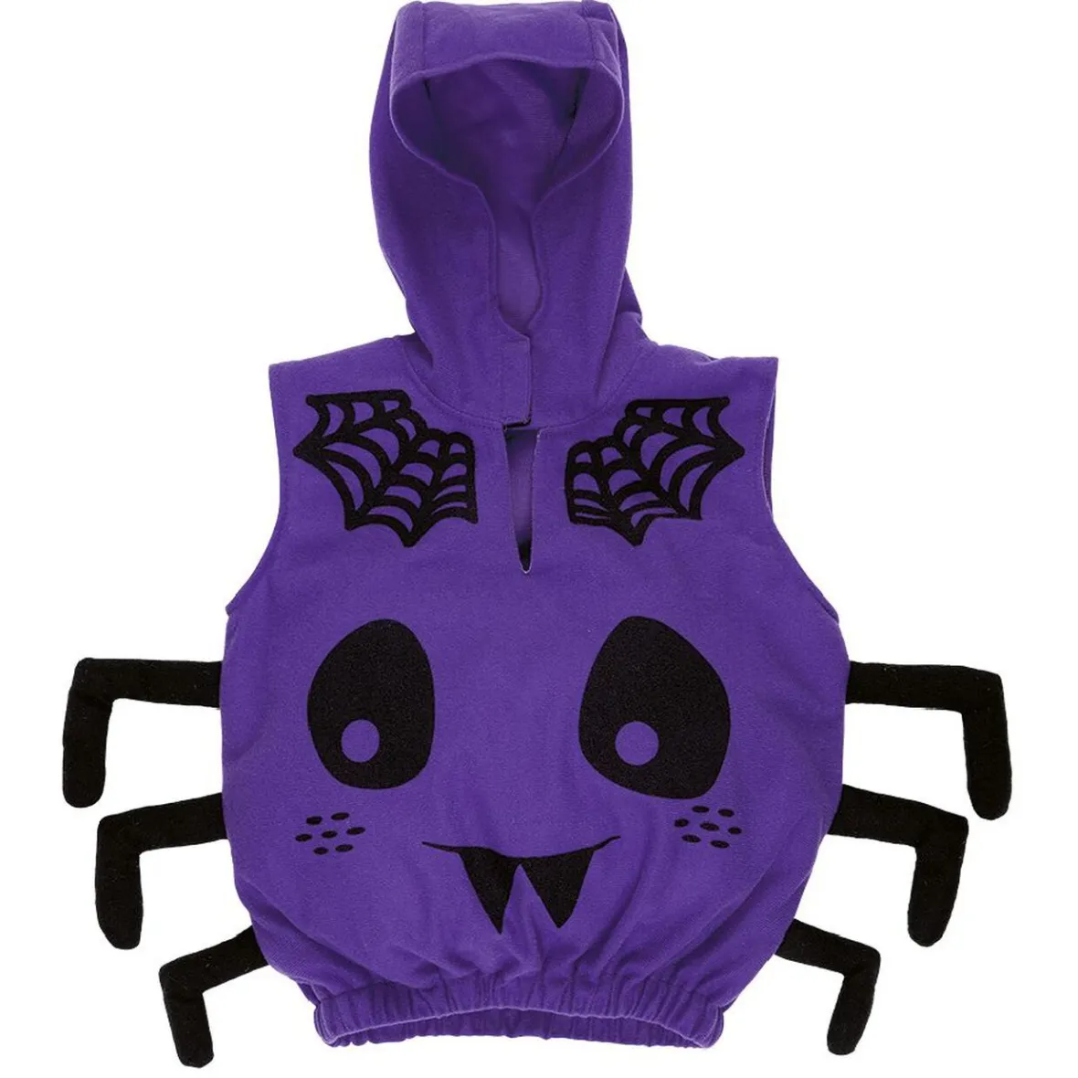 Un déguisement d’araignée pour bébé de 18/24 mois. Contient un haut violet à pois noir. Idéal pour le déguisement Halloween de votre enfant.
