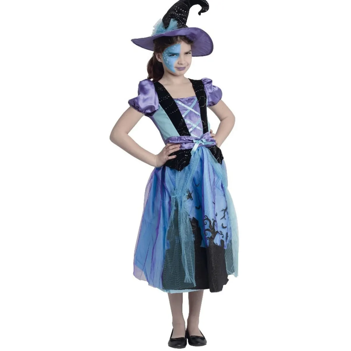 Dégusiement de sorcière pour enfant comprenant une robe et un chapeau taille 4/6 ans.