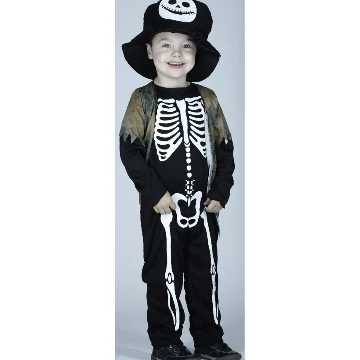 Déguisement garçon squelette comprenant chapeau, combinaison et chemise , polyester.