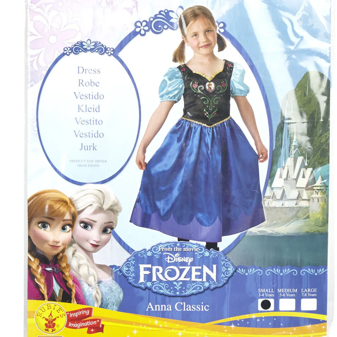 Déguisement Reine des neiges Anna Frozen Disney comprenant 1 robe bleue en polyester.