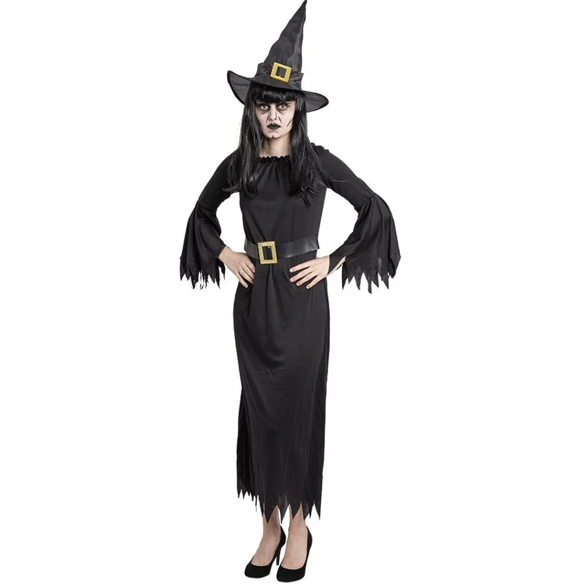 Abracadabra ! les humains n’ont qu’à bien se tenir avec ce déguisement de sorcière pour femme. Comporte un chapeau, une ceinture et une robe.