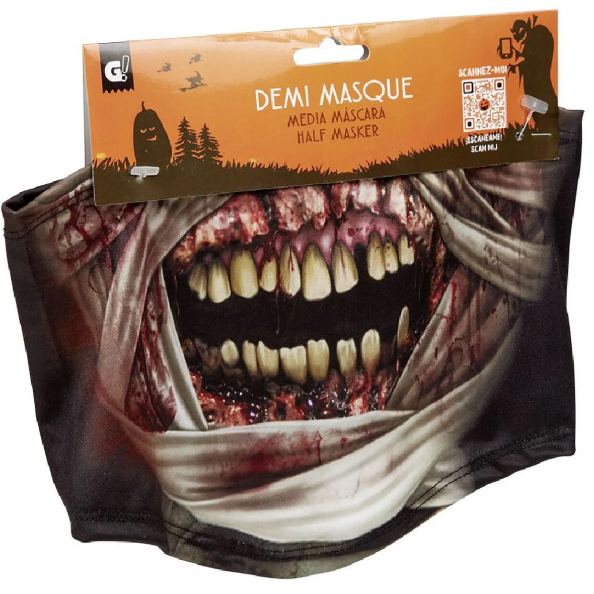 Demi masque en polyester imprimé mâchoire de zombie Halloween.