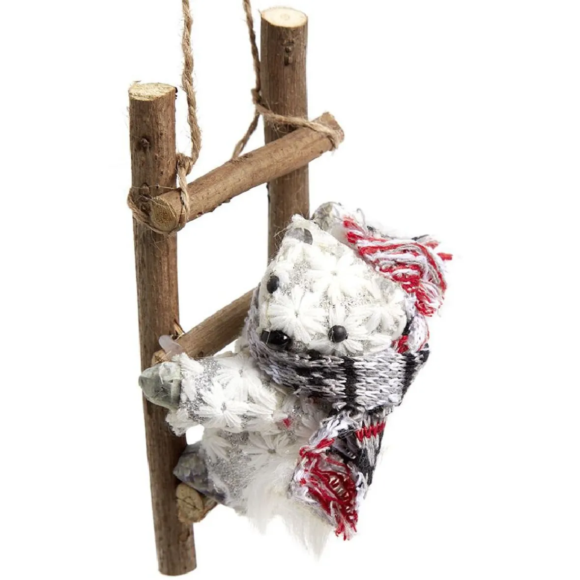 Jolie échelle de Noël à suspendre surplombée d’un petit écureuil dans le thème des fêtes de fin d’année.