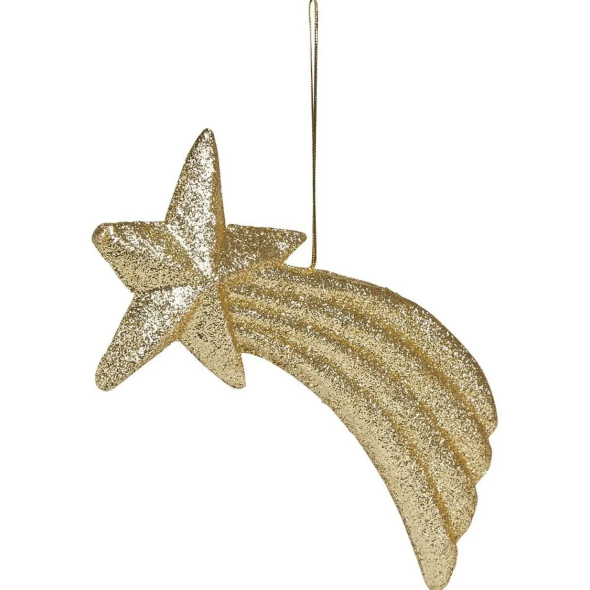 Pour mettre en décoration intérieure ou en décoration de sapin, cette étoile filante à paillettes dorées est idéale.