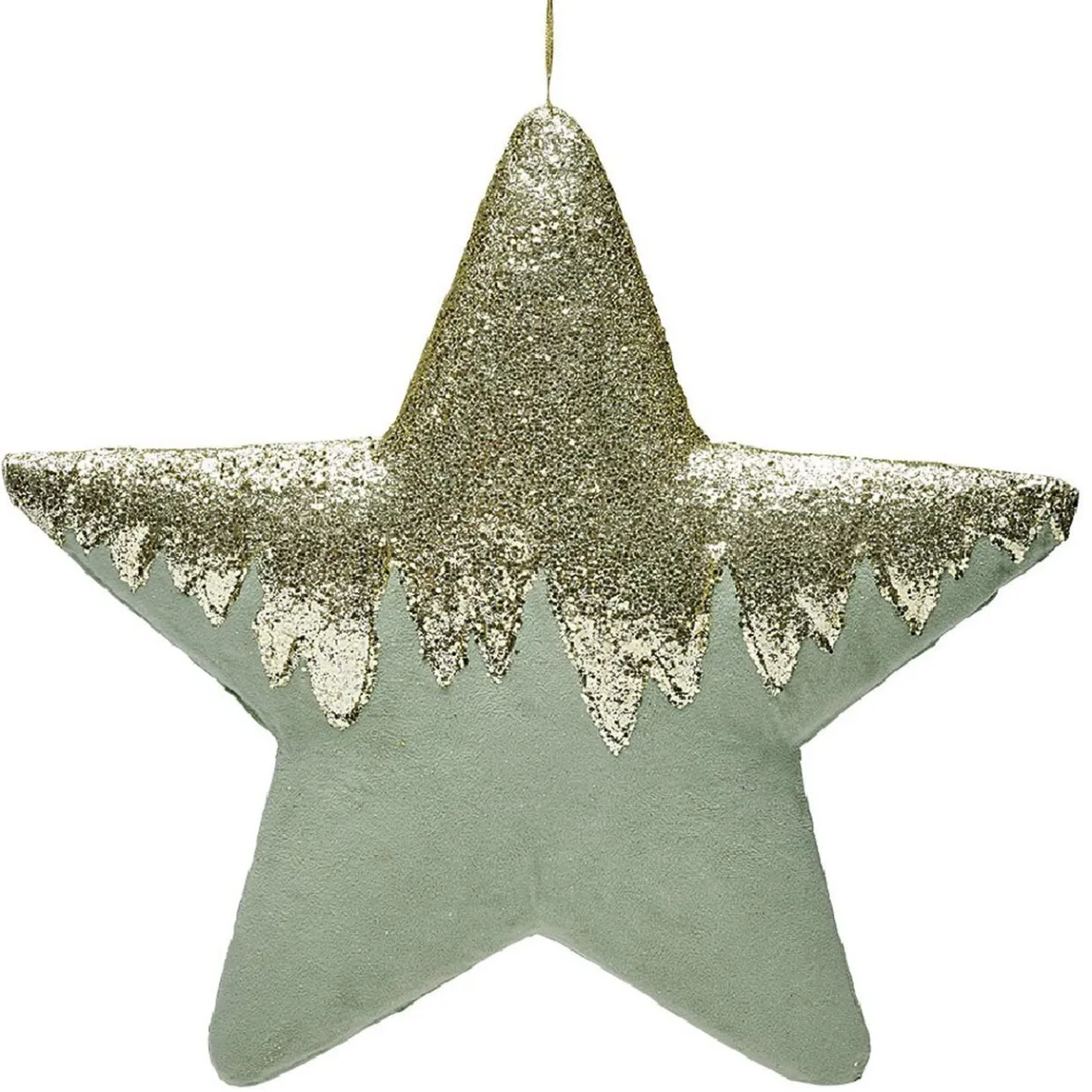Optez pour cette très sobre étoile en velours vert et paillettes dorées pour une déco chic.