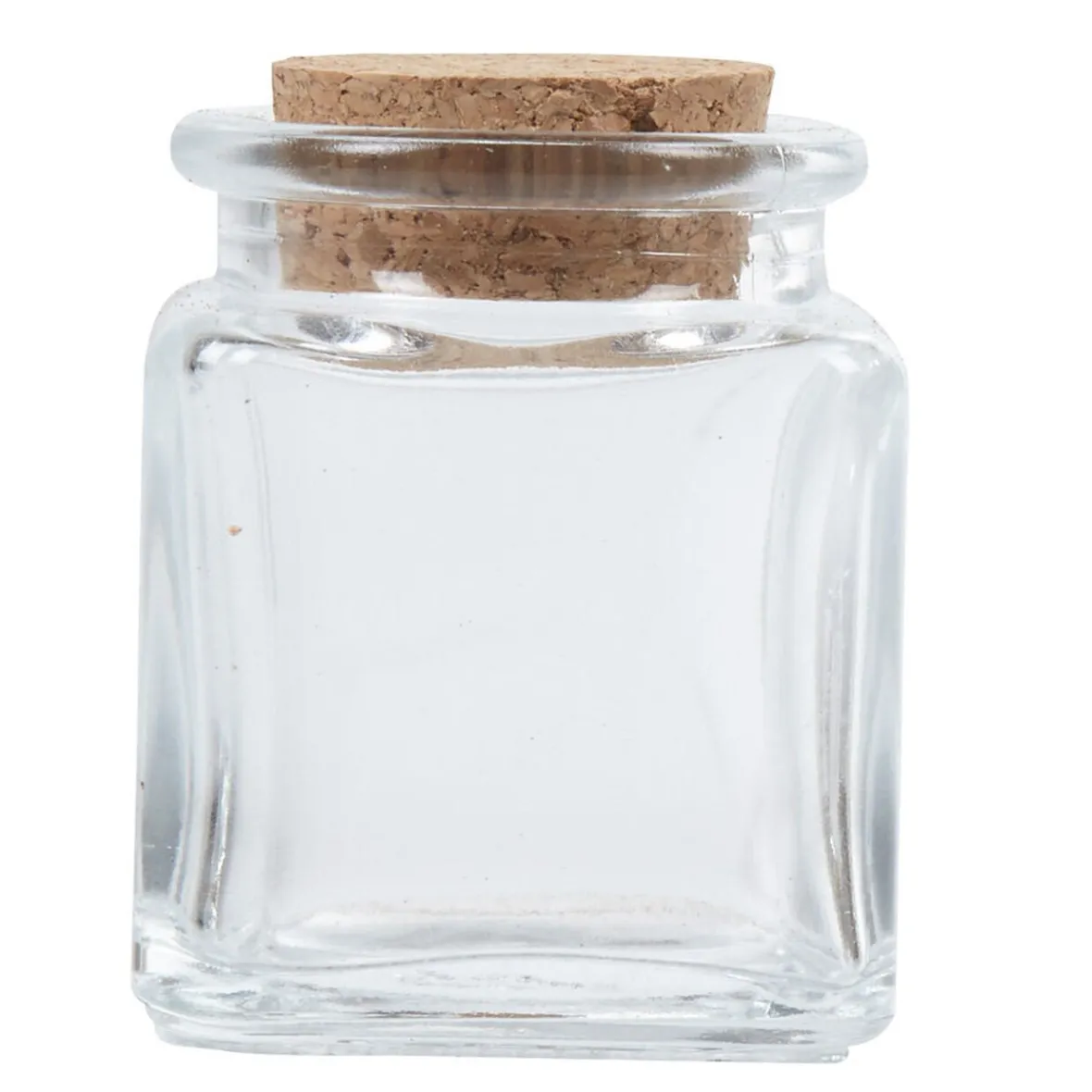 3 fioles à dragées transparentes en verre avec bouchons en liège, dim. 4xh.6 cm. Contenant à dragées idéal pour mariage ou autre évènement.
