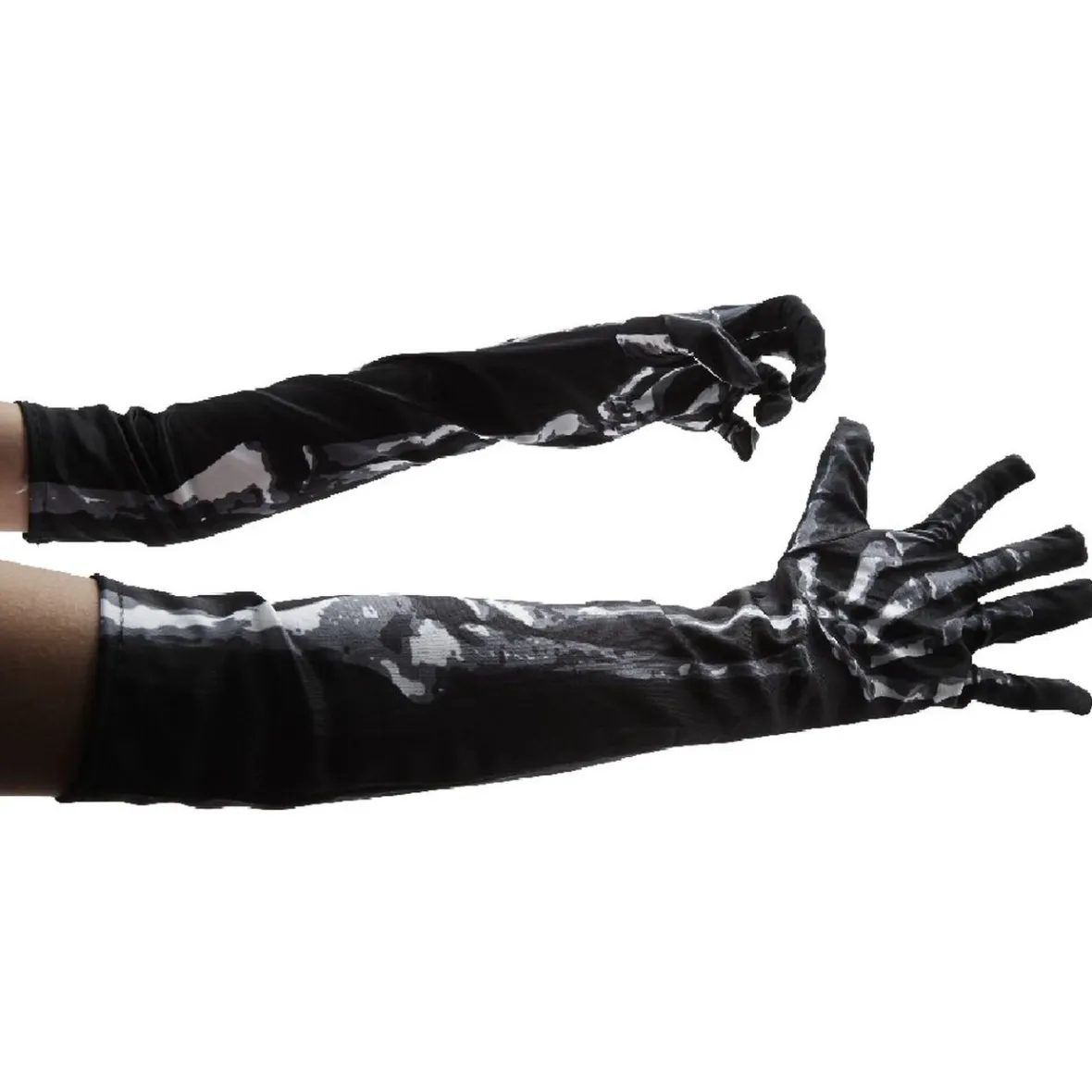 Complétez votre tenue de zombie ou votre costume de squelette avec cette paire de gants à l’ossature apparente pour être macabre jusqu’au bout des doigts.