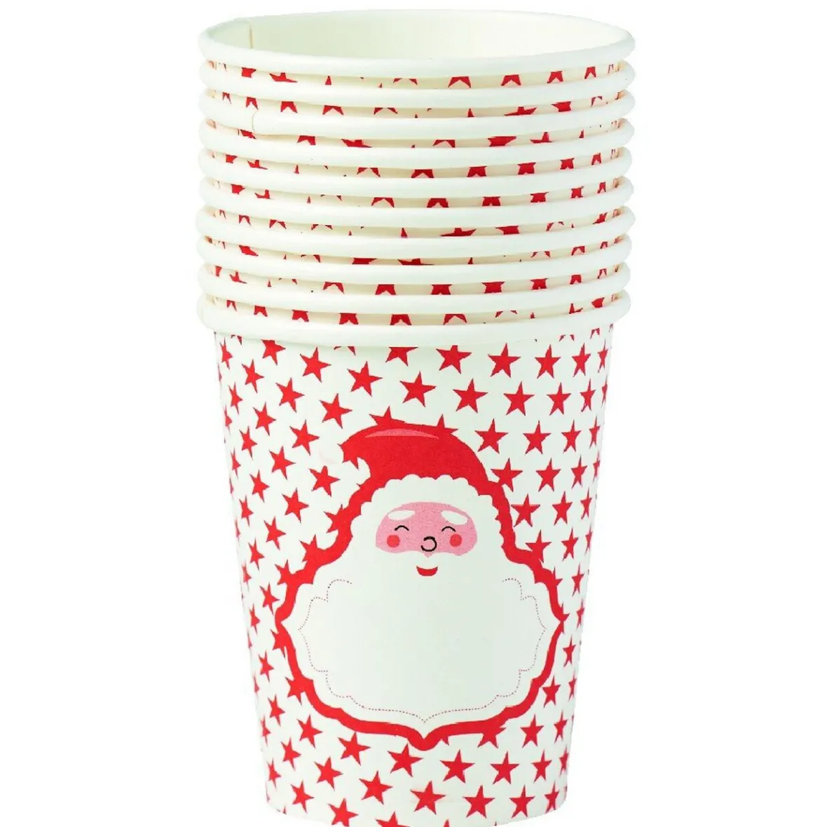 10 gobelets en carton à fond blanc design père noël 25 cl, ø 13,8 cm x h. 7,5 cm.