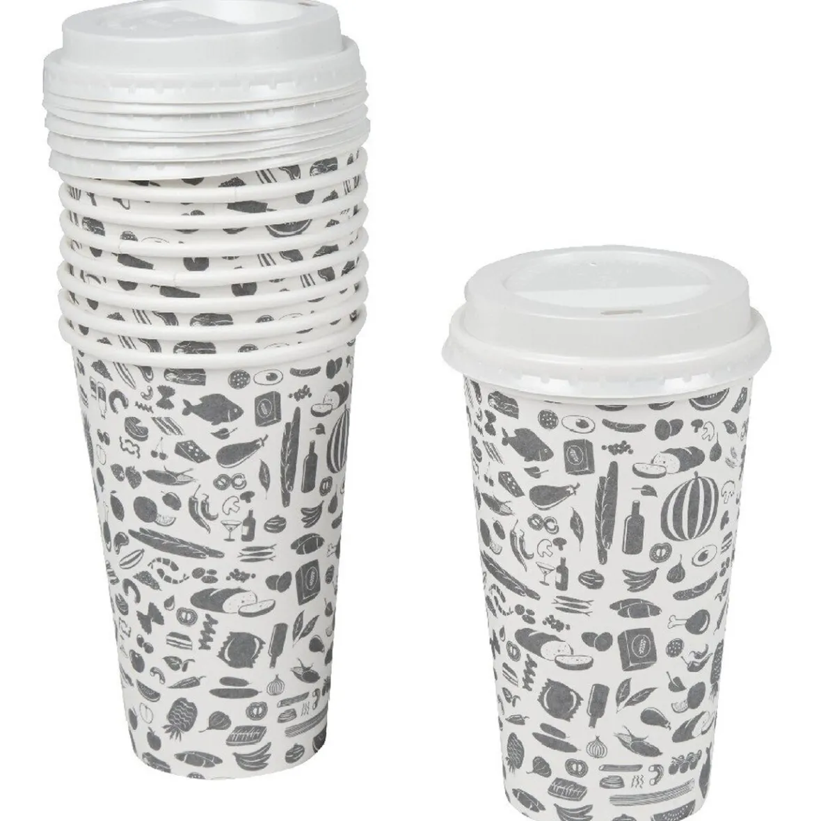 Lot de 10 gobelets jetables avec couvercles à ouverture pour emporter. Collection food truck.