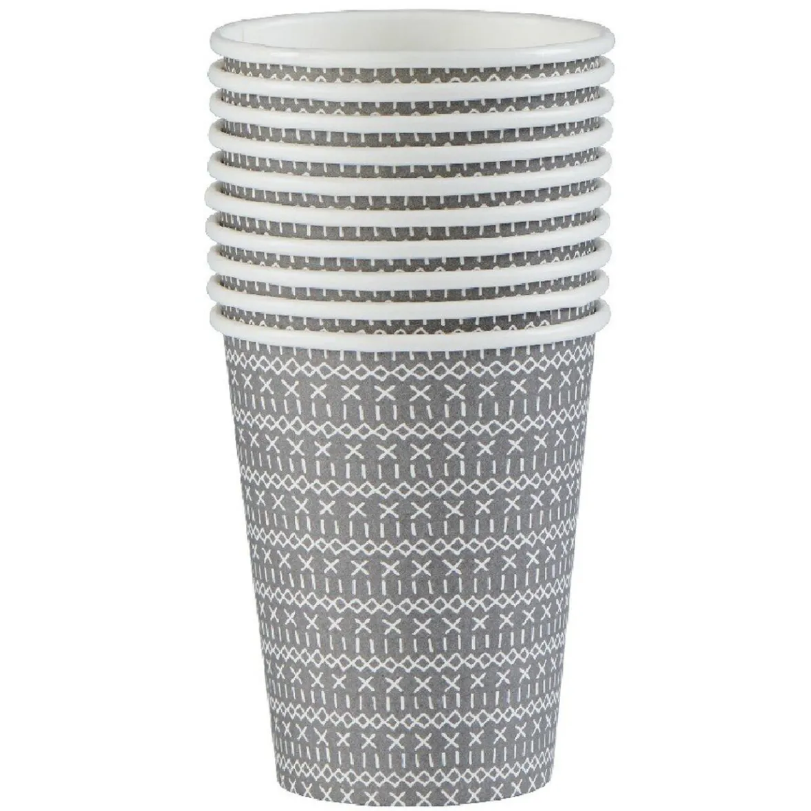 Lot de 10 gobelets jetables motifs crochets et croix blancs et gris, d’une contenance de 25 cl. N’hésitez pas à compléter votre table avec les assiettes jetables assorties, réf. 506044 !