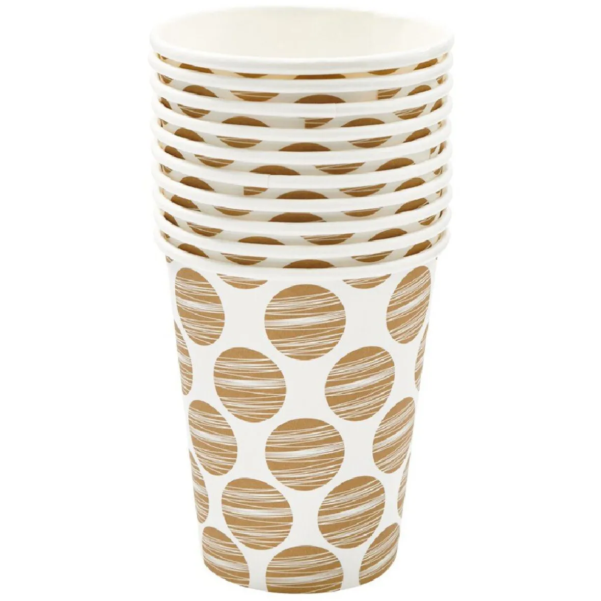 Lot de 10 gobelets jetables avec motifs grospois or et blancs, d’une contenance de 25 cl. Idéals pour toutes occasions festives !