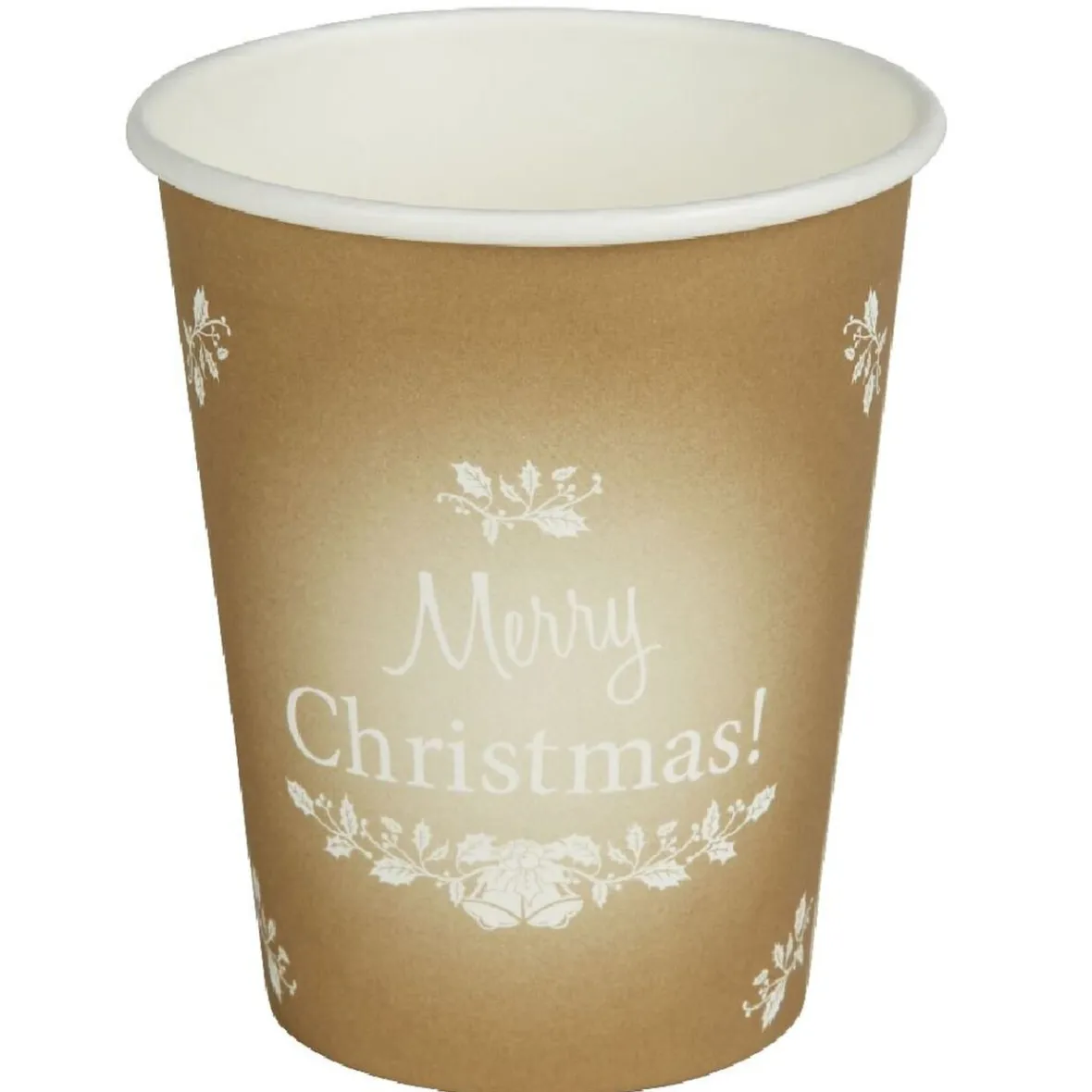 Lot de 10 gobelets en carton à motif houx d’or, l’objet pratique indispensable à votre table de Noël.