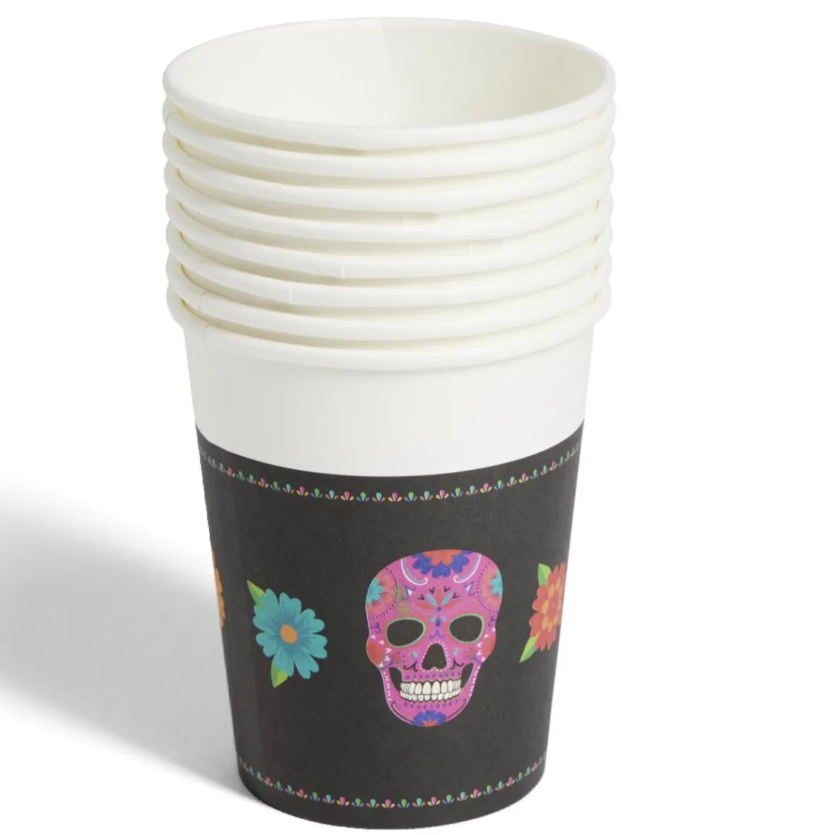 Gobelet papier Halloween tête de mort mexicaine 260ml x8-Gifi Outlet