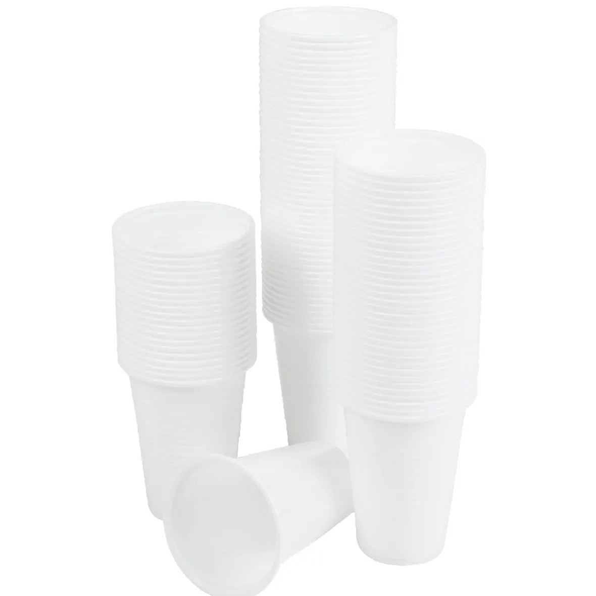 Lot de 100 gobelets en plastique blanc réutilisable.
