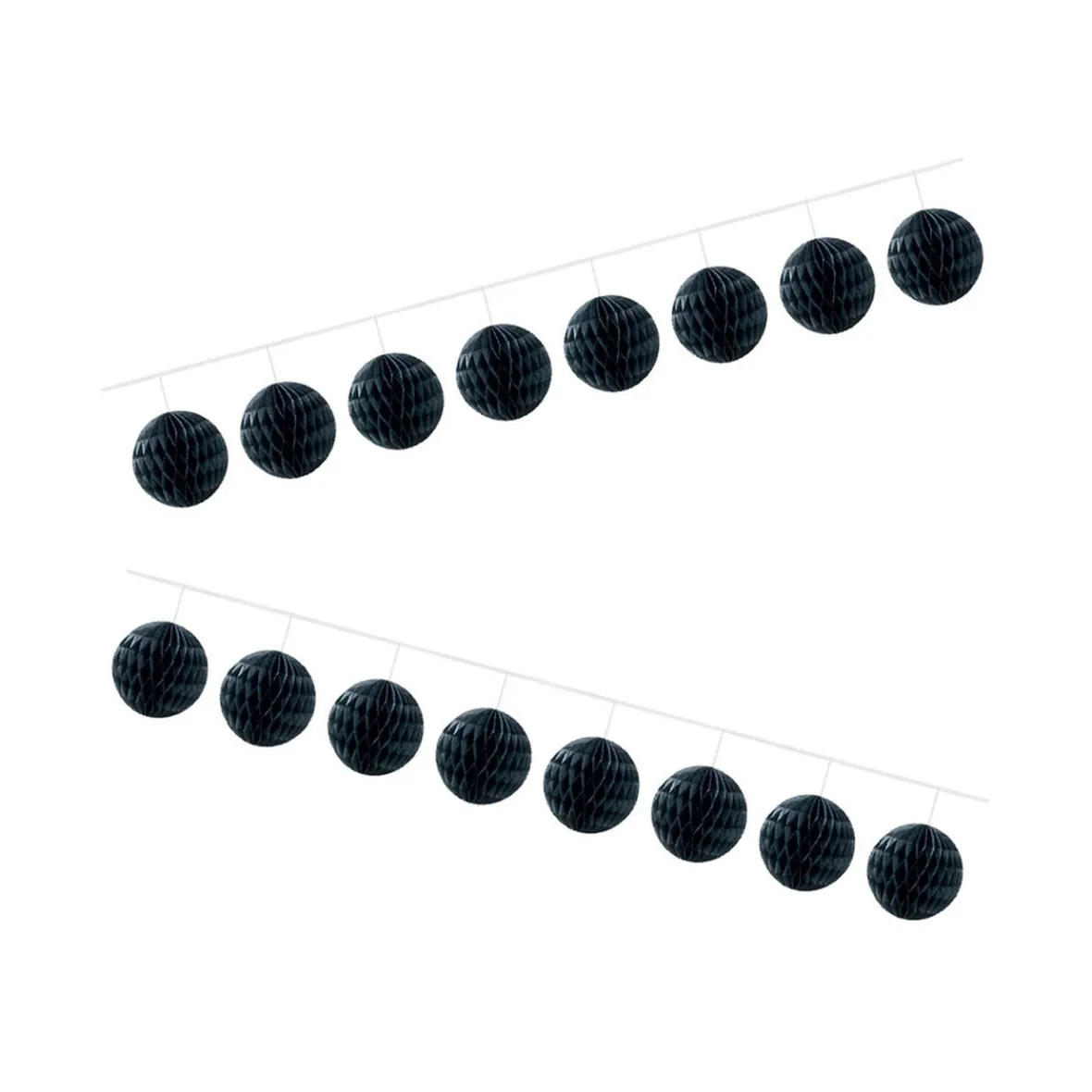 4 mètres de guirlande en papier composée de boules noires de 10 cm de diamètre.