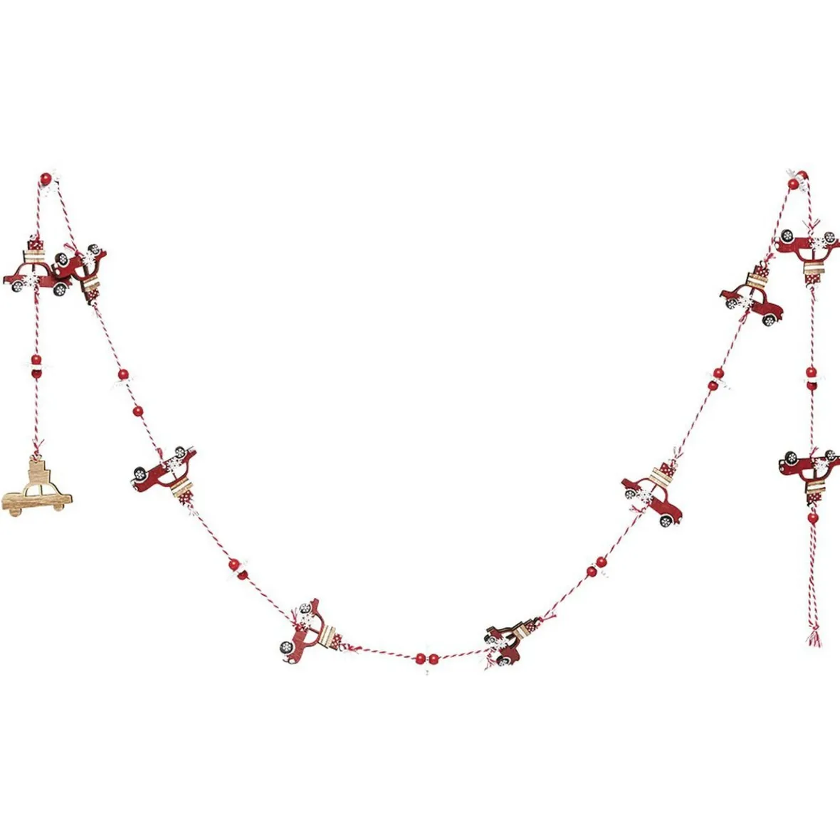 Guirlande de Noël rouge et blanche avec voitures et flocons en bois.Vous désirez cette année une décoration vintage pour votre sapin? Nous avons l’accessoire qu’il vous faut! Cette guirlande sublimera parfaitement votre thème.Dimensions : 6 x 180 cm