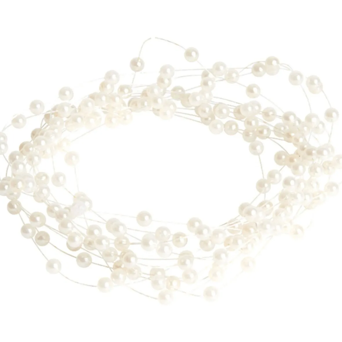 Guirlande de perles ivoires L. 3 m, plastique. Peut s’utiliser en décoration pour mariage ou autre évènement.